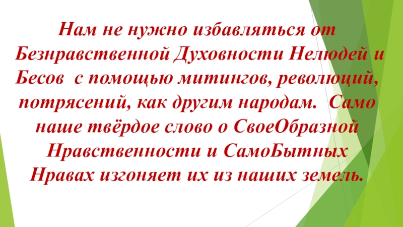 Слайд 26Нам не нужно избавляться от Безнравственной Духовности Нелюдей и Бесов с
