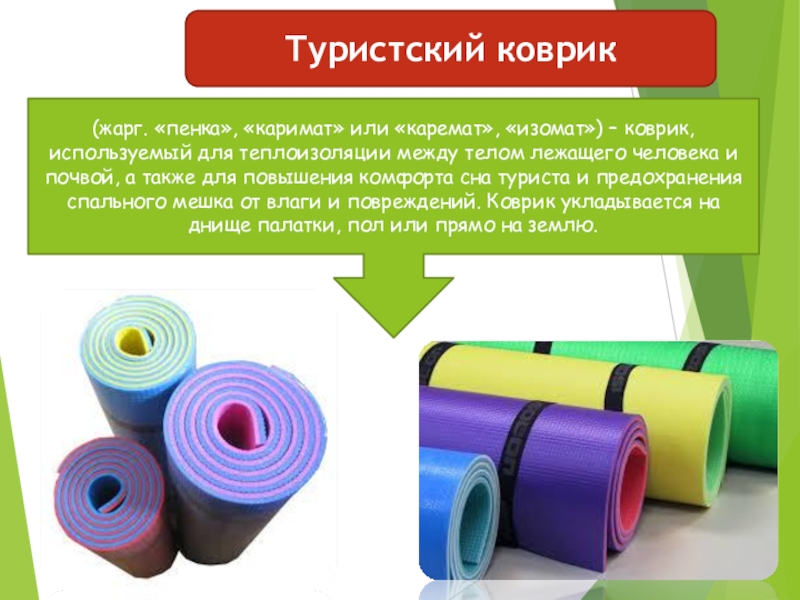 (жарг. «пенка», «каримат» или «каремат», «изомат») – коврик, используемый для