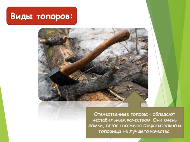 Отечественные топоры – обладают нестабильным качеством. Они очень ломки, плюс