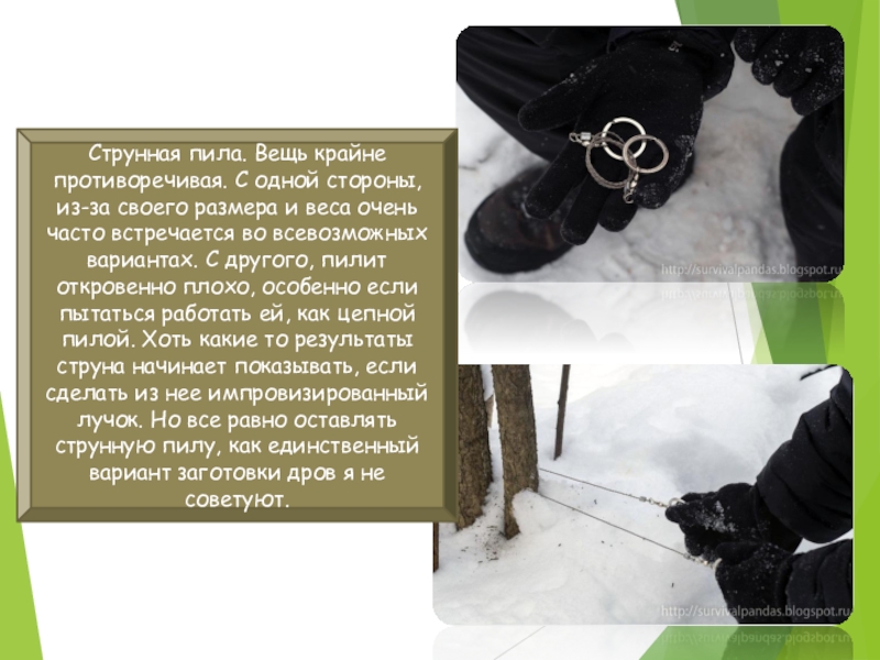 Слайд 21Струнная пила. Вещь крайне противоречивая. С одной стороны, из-за своего размера