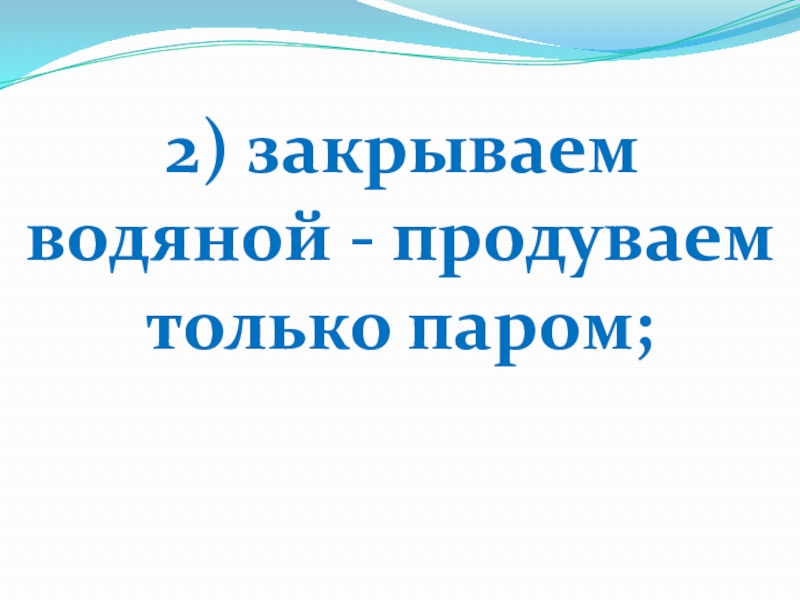 Слайд 13 2) закрываем водяной - продуваем только паром;