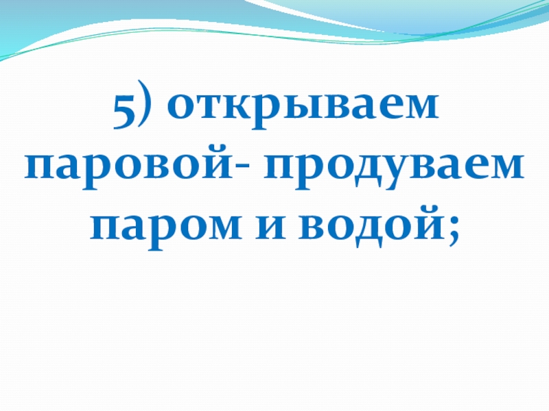 Слайд 19 5) открываем паровой- продуваем паром и водой;