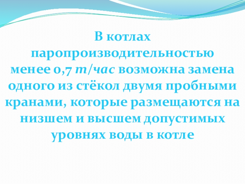 Слайд 6Если при работе парового котла краны водоуказательного прибора не загрязнены, то уровень