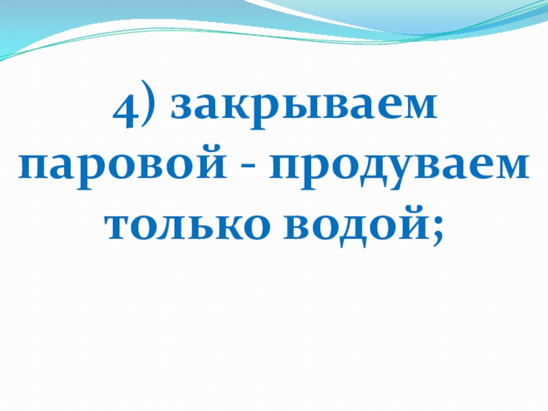 Слайд 17 4) закрываем паровой - продуваем только водой;