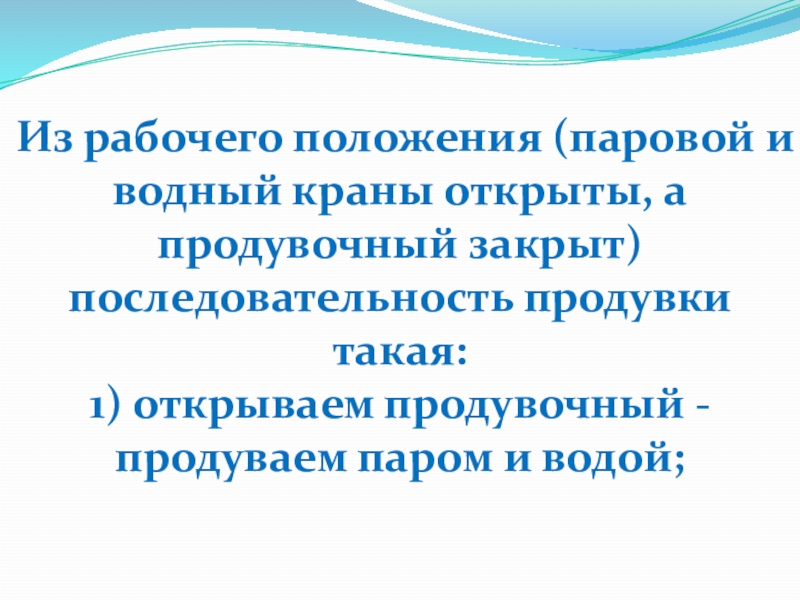 Слайд 15 3) открываем водяной - продуваем паром и водой;