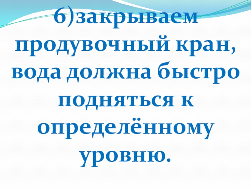 Слайд 22 6)закрываем продувочный кран, вода должна быстро подняться к определённому уровню.