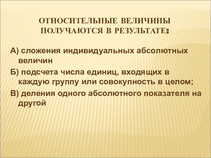 ОТНОСИТЕЛЬНЫЕ ВЕЛИЧИНЫ ПОЛУЧАЮТСЯ В РЕЗУЛЬТАТЕ: