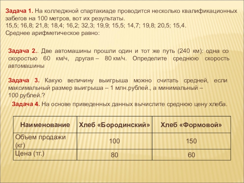 Задача 4. На основе приведенных данных вычислите среднюю цену хлеба.