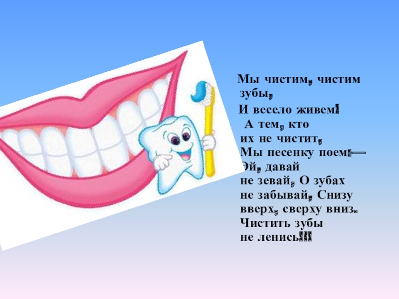 Слайд 19 Мы чистим, чистим зубы,