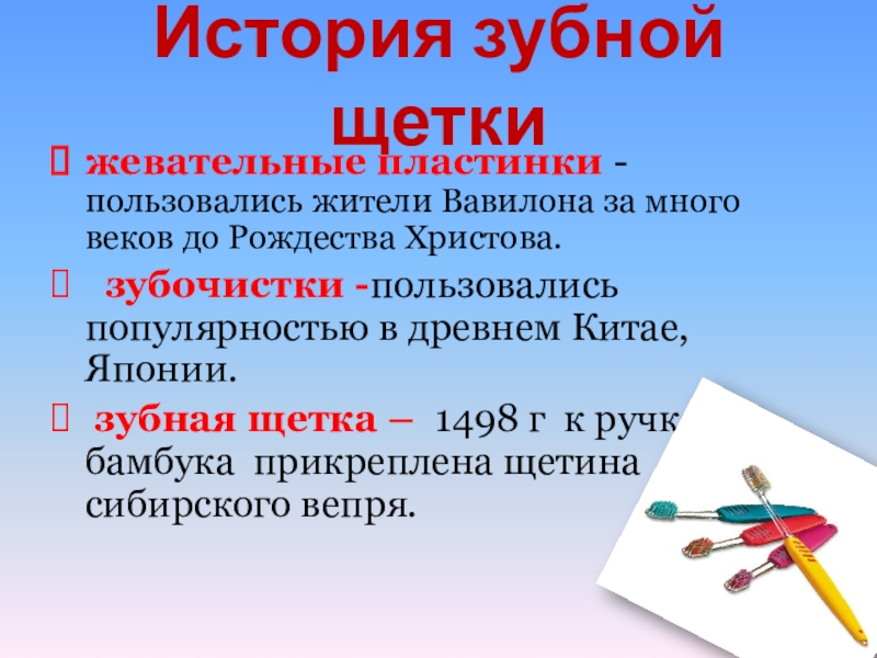 Слайд 8История зубной щетки