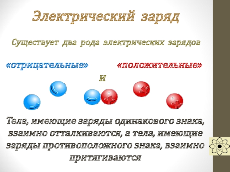Электрон имеет отрицательный электрический заряд