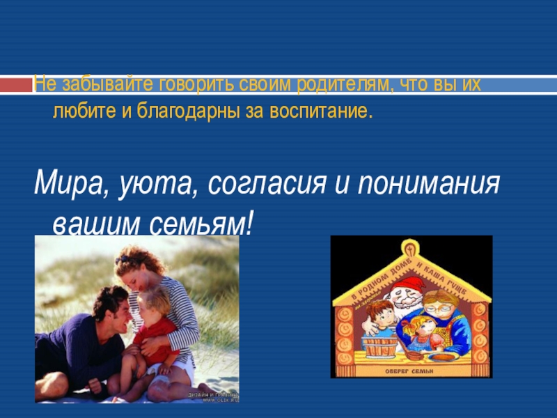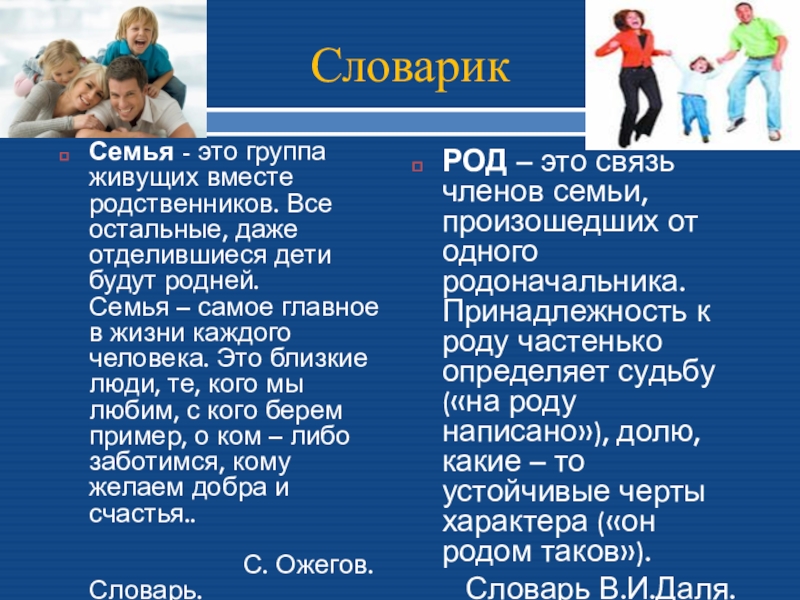 Семья – самое главное в жизни каждого человека. Это близкие люди, те, кого мы любим, с кого берем пример, о ком – либо заботимся, кому желаем добра и счастья..