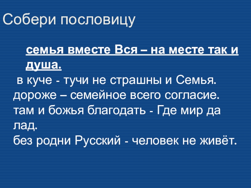 Вся семья вместе – так и душа на месте.