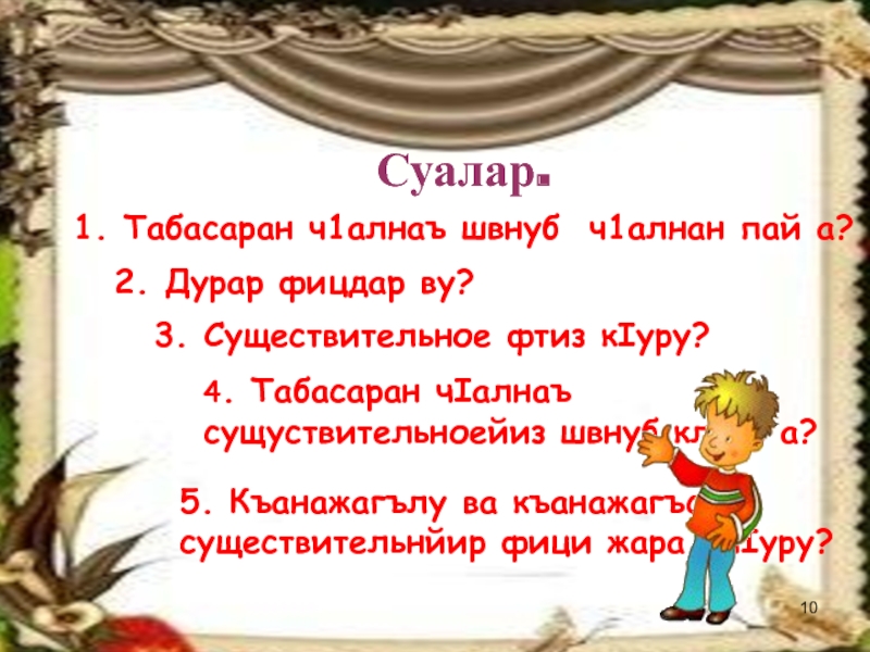 4. Табасаран чIалнаъ сущуствительноейиз швнуб класс а?