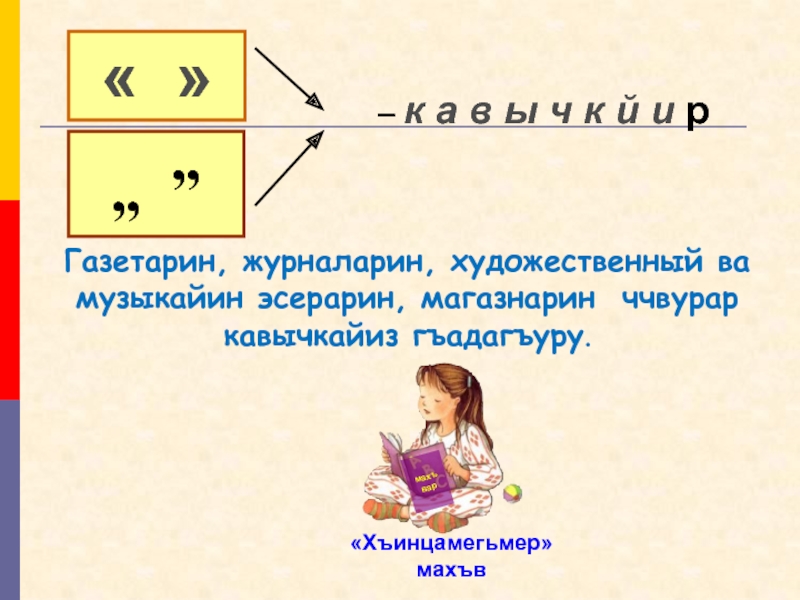 Газетарин, журналарин, художественный ва музыкайин эсерарин, магазнарин ччвурар кавычкайиз гъадагъуру.