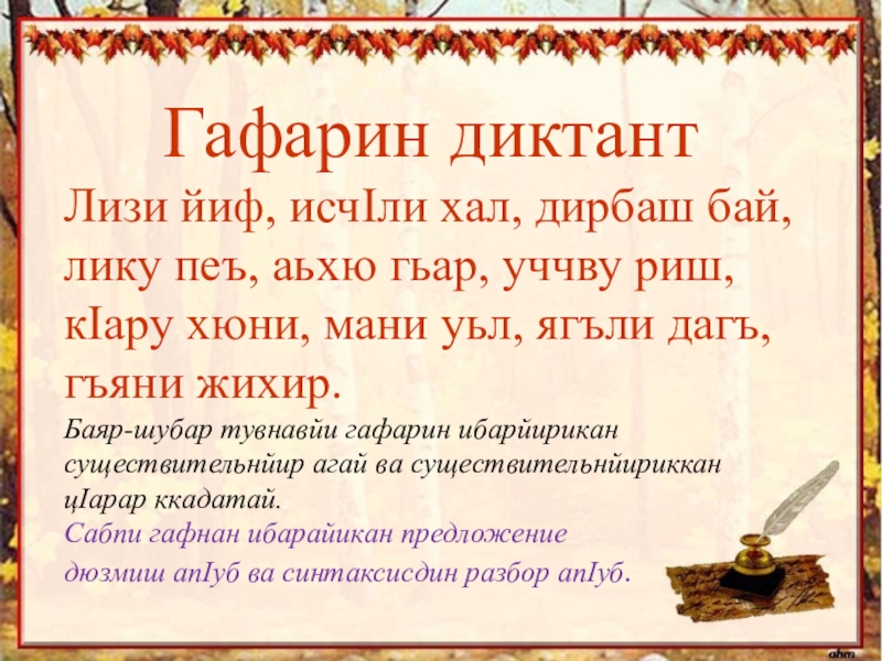 Сари кIуру, гьаз ву хъа гъи бабан чIал?