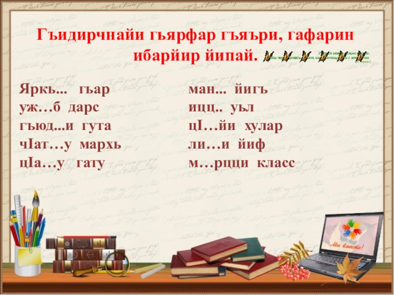 ЧIал ккундар хьуб, жвув даккун хьуб дарин бес,