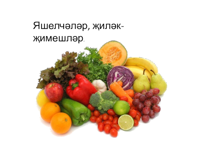 Слайд 2Яшелчәләр, җиләк-җимешләр.