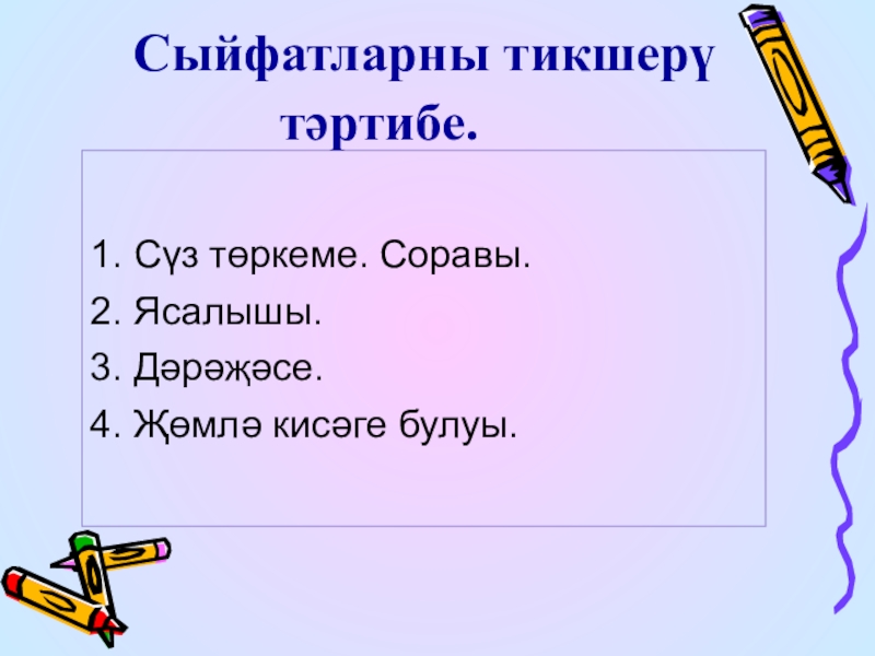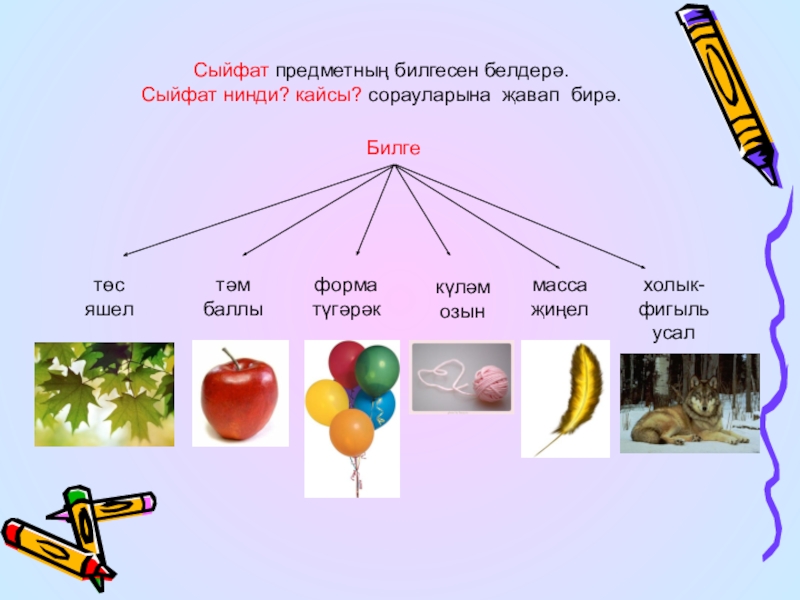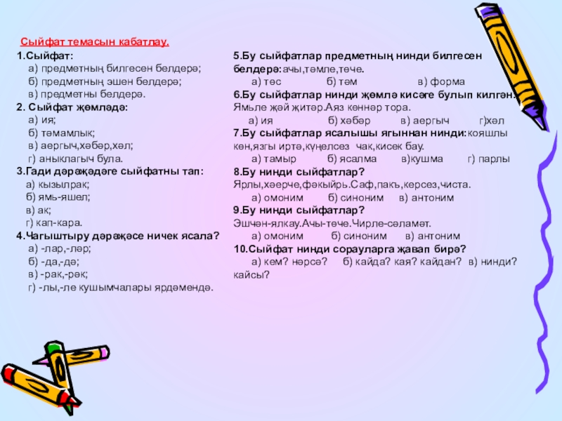 5.Бу сыйфатлар предметның нинди билгесен белдерә:ачы,тәмле,төче.