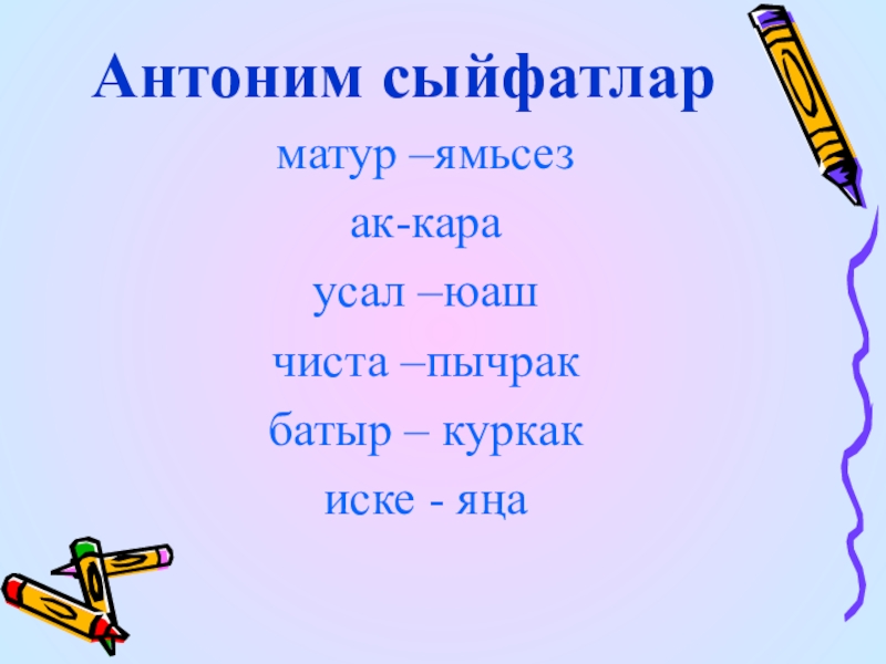 Эшчән-ялкау.Ачы-төче.Чирле-сәламәт.