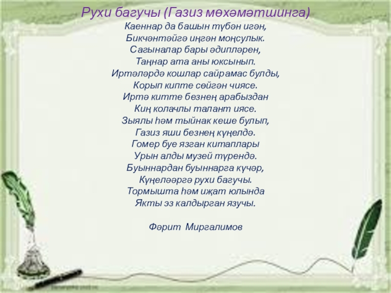 Слайд 13Рухи багучы (Газиз мөхәмәтшинга)