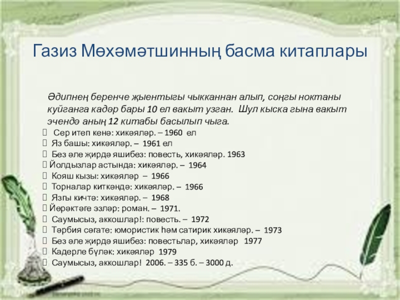 Слайд 9Газиз Мөхәмәтшинның басма китаплары