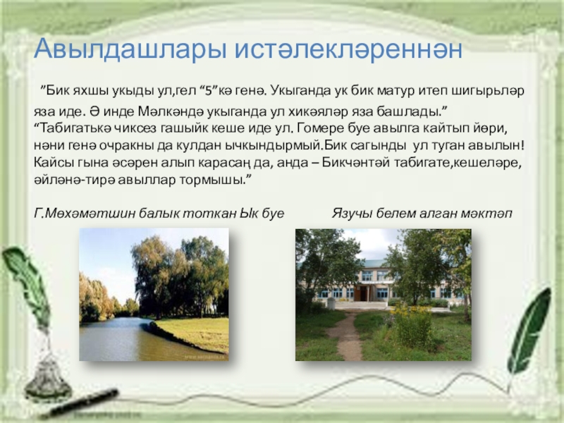 Г.Мөхәмәтшин балык тоткан Ык буе Язучы белем алган мәктәп