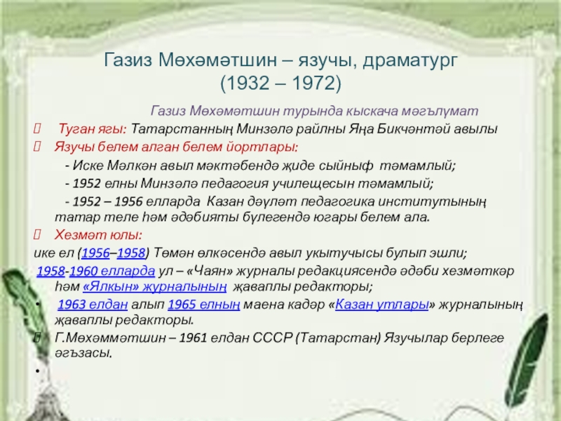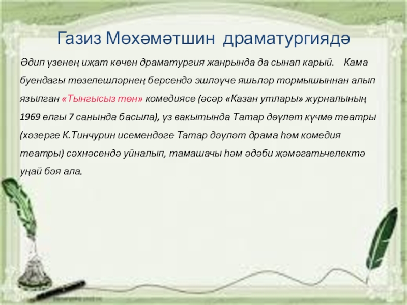 Слайд 8Газиз Мөхәмәтшин драматургиядә
