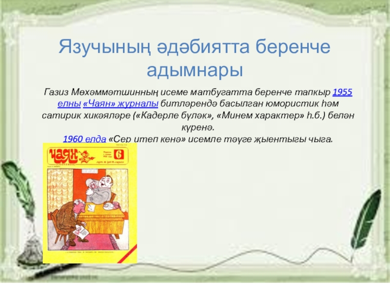 Слайд 5Язучының әдәбиятта беренче адымнары