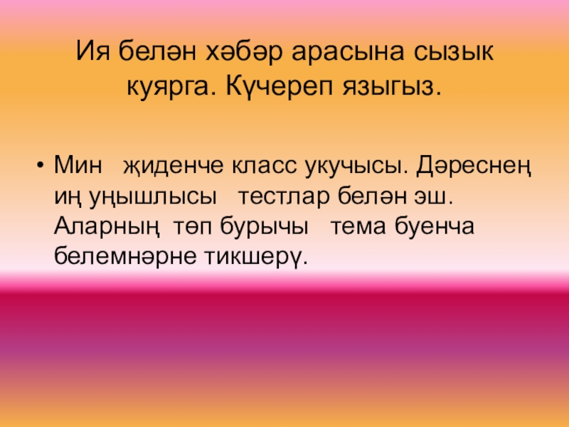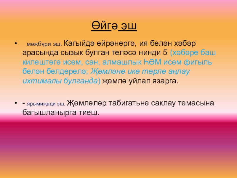 Бирем. Җөмлә төрләрен билгеләргә, тыныш билгеләрен куярга.