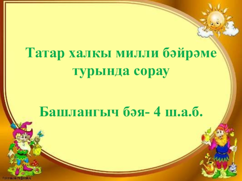 Татар халкы милли бәйрәме турында сорауБашлангыч бәя- 4 ш.а.б.