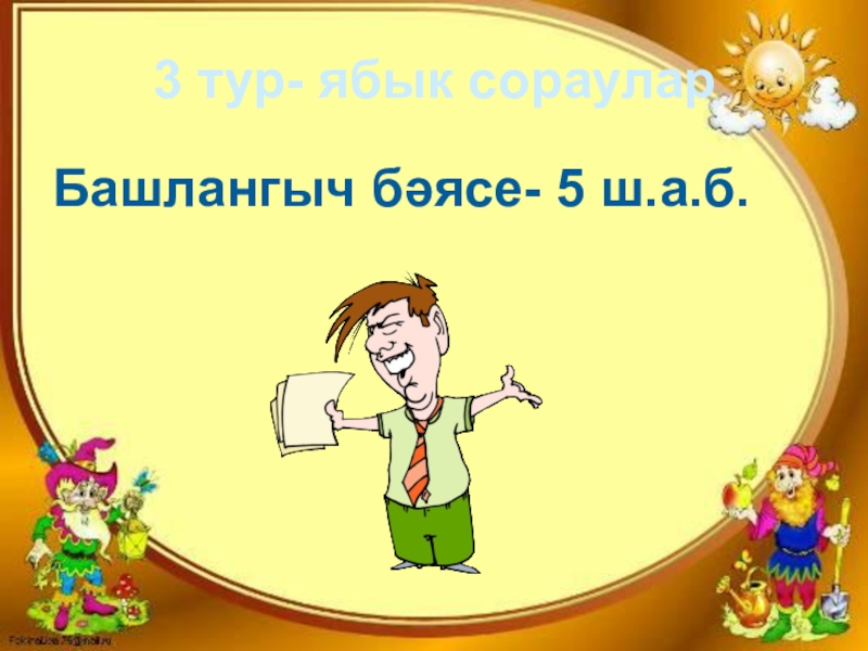 3 тур- ябык сорауларБашлангыч бәясе- 5 ш.а.б.