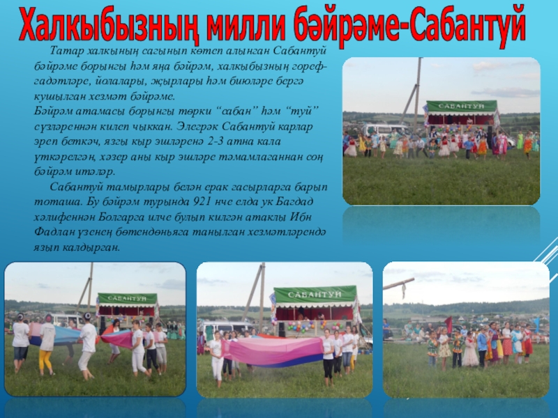 Слайд 7 Татар халкының сагынып көтеп алынган Сабантуй бәйрәме борынгы