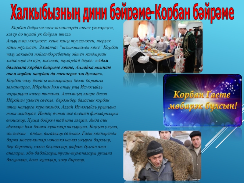 Слайд 12Халкыбызның дини бәйрәме-Корбан бәйрәме
