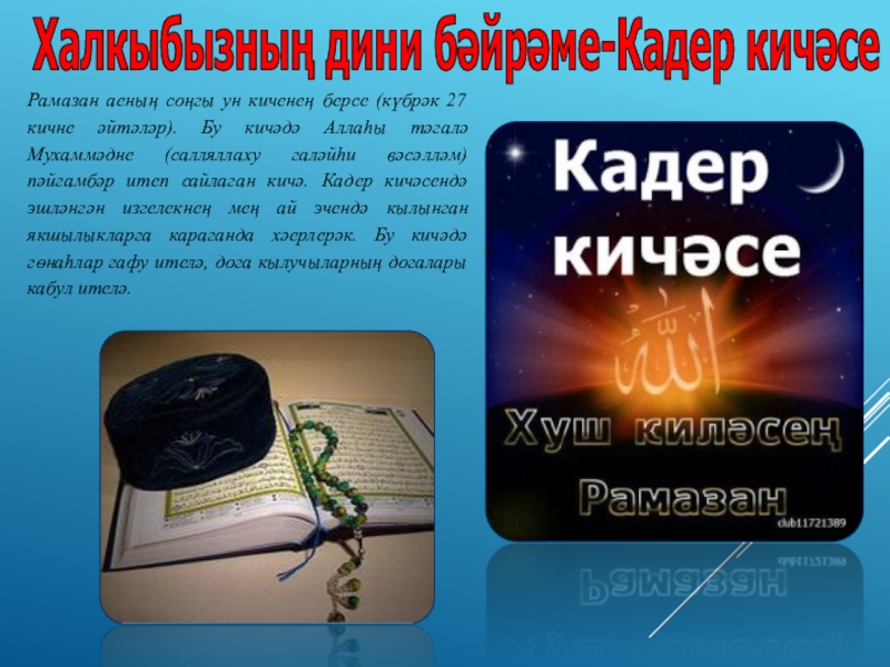 Слайд 15Халкыбызның дини бәйрәме-Кадер кичәсе