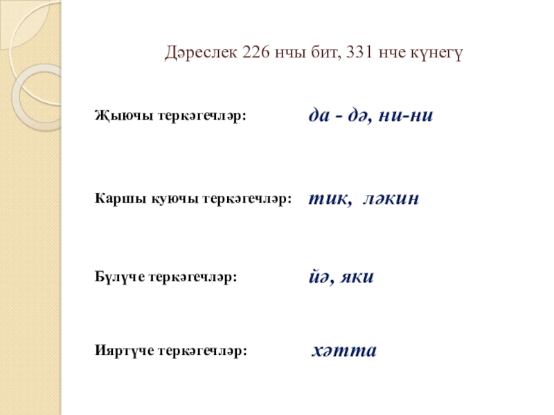 Гәрчә, гүя, ки, гүяки, әгәр, чөнки, ягъни, хәтта, әйтерсең, диярсең
