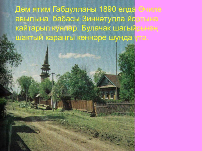 Слайд 6Дөм ятим Габдулланы 1890 елда Өчиле авылына бабасы Зиннәтулла йортына кайтарып