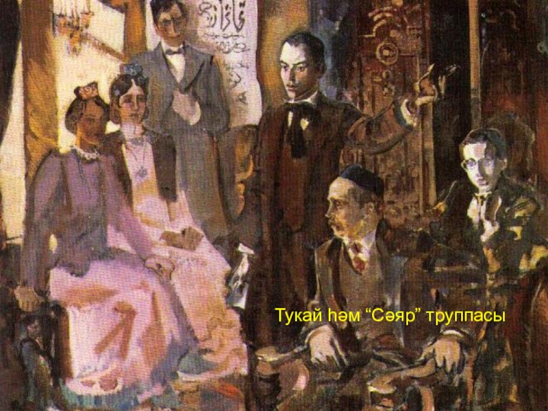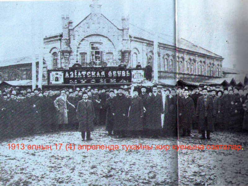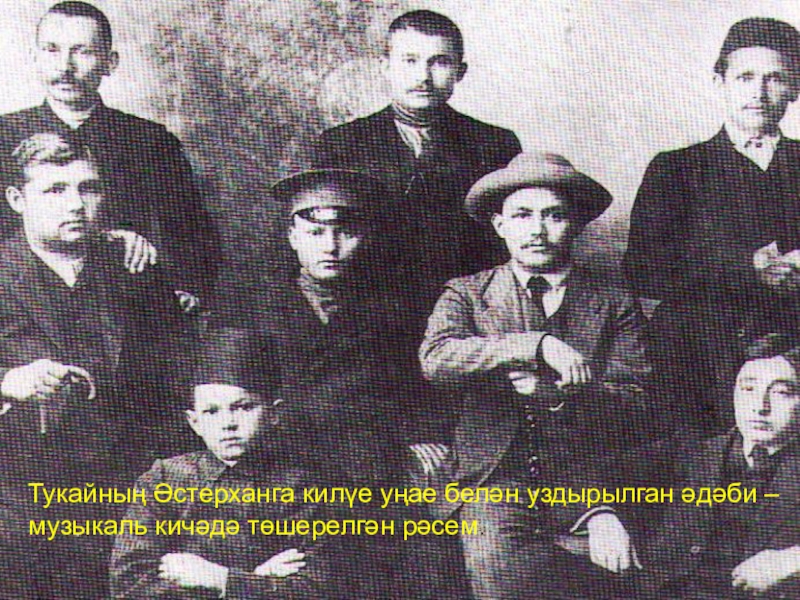 Слайд 52Тукайның Әстерханга килүе уңае белән уздырылган әдәби – музыкаль кичәдә төшерелгән