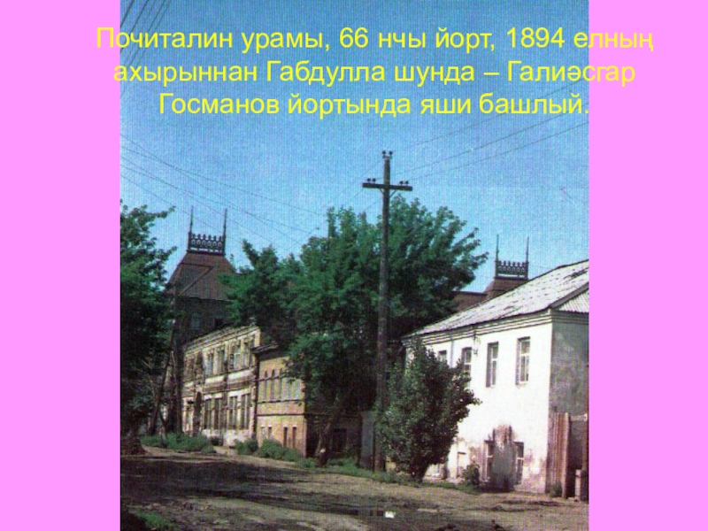 Слайд 15Почиталин урамы, 66 нчы йорт, 1894 елның ахырыннан Габдулла шунда –