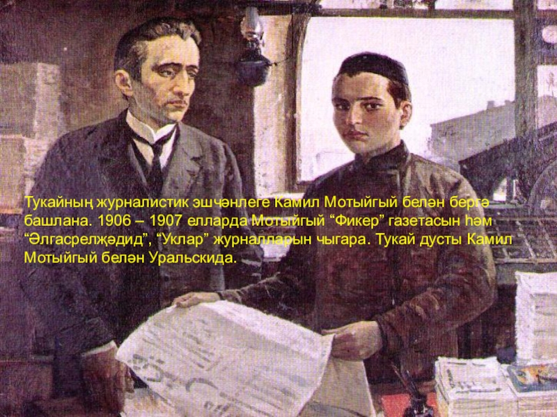 Слайд 22Тукайның журналистик эшчәнлеге Камил Мотыйгый белән бергә башлана. 1906 – 1907