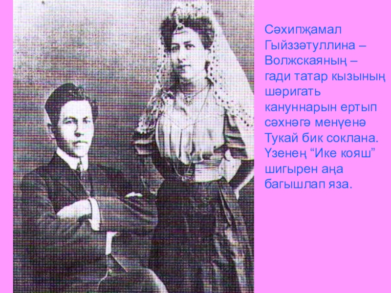 Слайд 34Сәхипҗамал Гыйззәтуллина – Волжскаяның – гади татар кызының шәригать кануннарын ертып