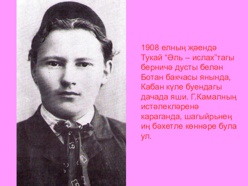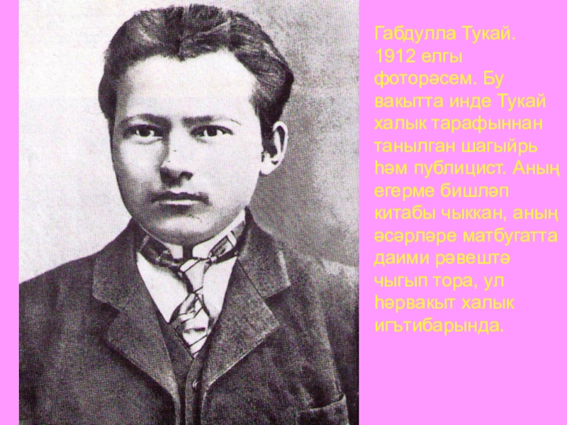 Слайд 47Габдулла Тукай. 1912 елгы фоторәсем. Бу вакытта инде Тукай халык тарафыннан