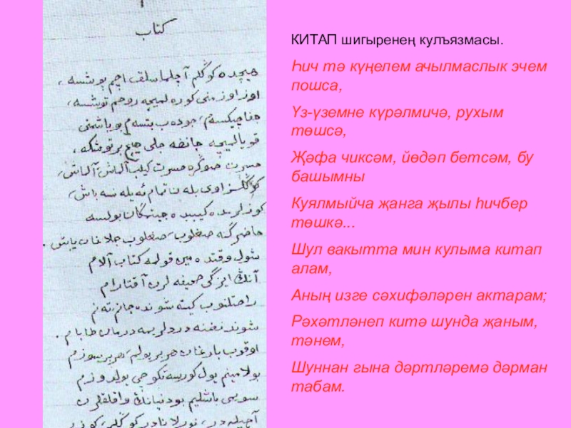 Слайд 49КИТАП шигыренең кулъязмасы.