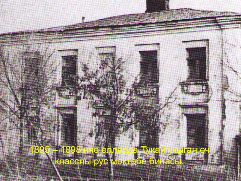 Слайд 191895 – 1898 нче елларда Тукай укыган өч класслы рус мәктәбе