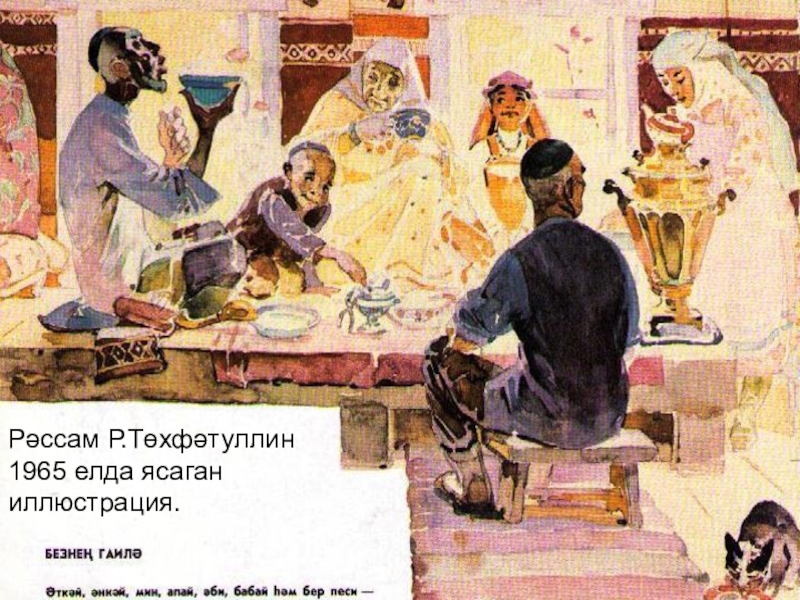 Слайд 46Рәссам Р.Төхфәтуллин 1965 елда ясаган иллюстрация.