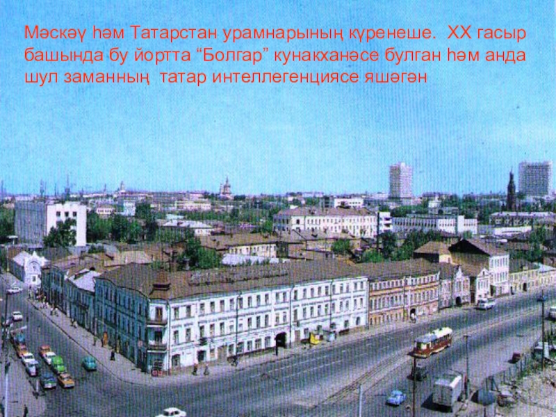 Слайд 28Мәскәү һәм Татарстан урамнарының күренеше. XX гасыр башында бу йортта “Болгар”