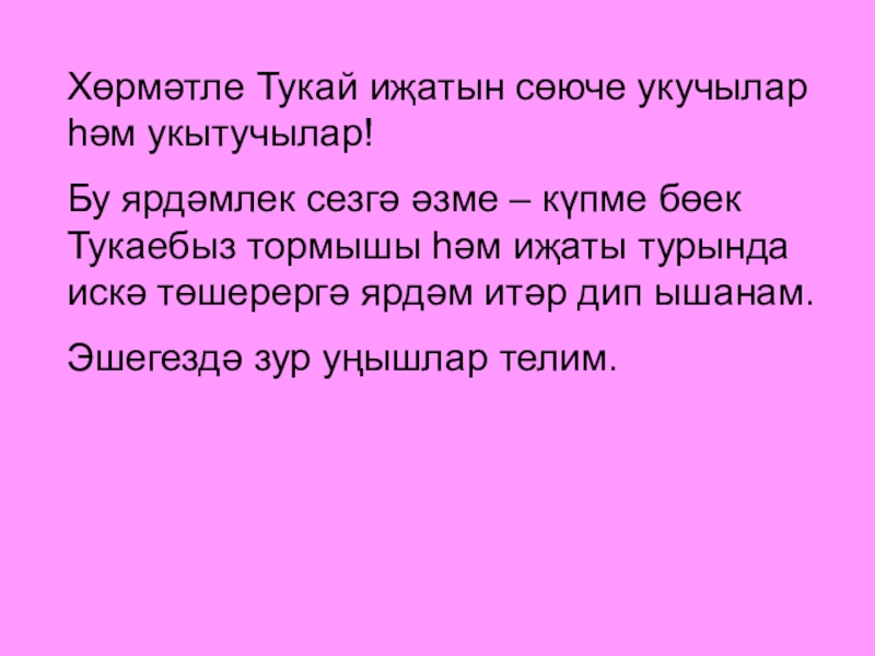 Слайд 70Хөрмәтле Тукай иҗатын сөюче укучылар һәм укытучылар!