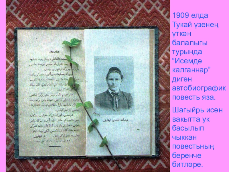 Слайд 481909 елда Тукай үзенең үткән балалыгы турында “Исемдә калганнар” дигән автобиографик