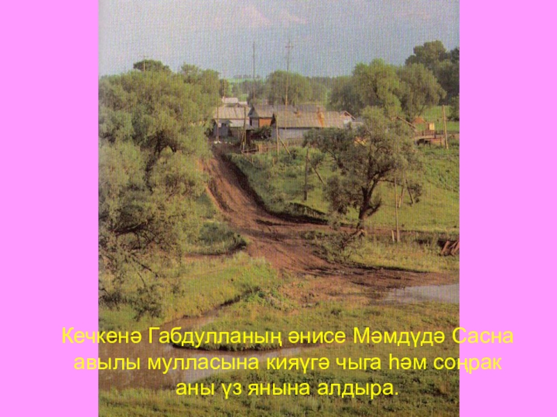 Слайд 5Кечкенә Габдулланың әнисе Мәмдүдә Сасна авылы мулласына кияүгә чыга һәм соңрак