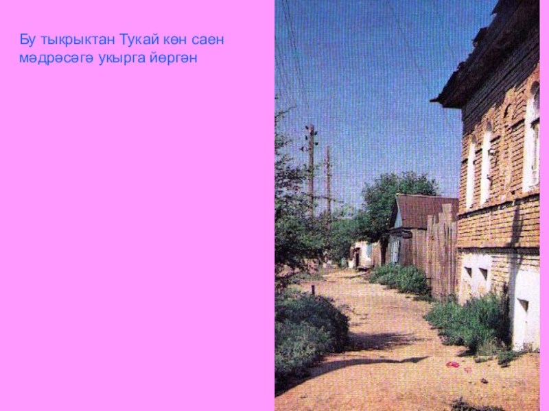 Слайд 17Бу тыкрыктан Тукай көн саен мәдрәсәгә укырга йөргән